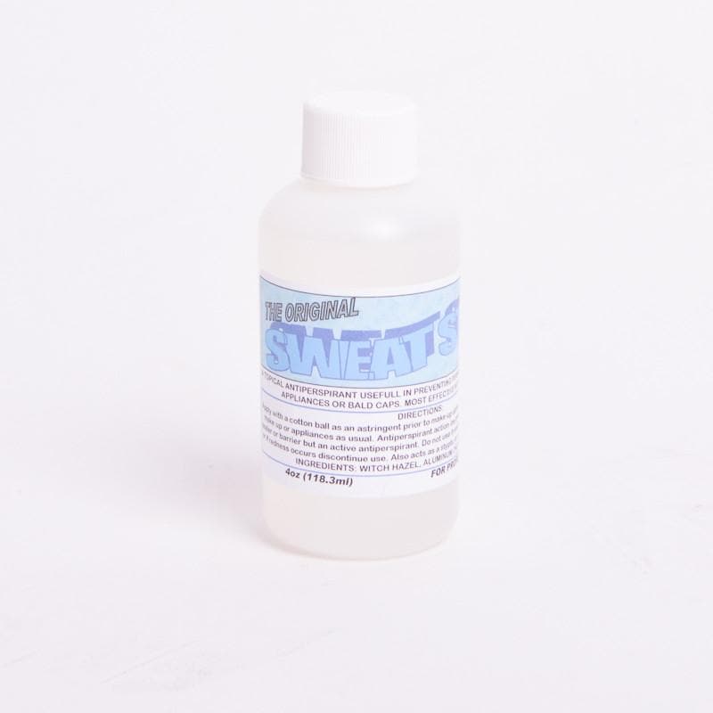 Use Sweat Stop on skin before applying prosthetics to achieve the very best adhesion from your glue medium. This is not a sealer or barrier product, but an active antiperspirant. It can be applied not only to the face and neck, but it can also be combed through the hair under a bald cap.