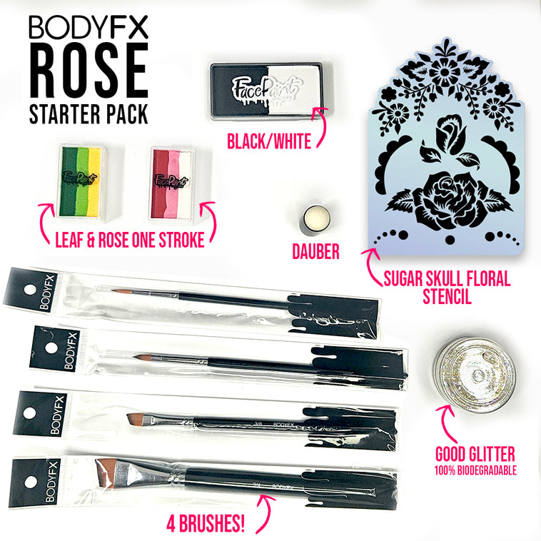 The Rose Starter Pack is the perfect introduction to the world of floral face and body art. Whether you're a beginner or an experienced artist, this kit will inspire you to create beautiful and unique designs.