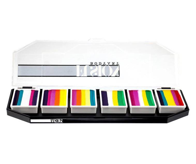 Though widely used around the world by face painters & special FX artists, as of yet, the US FDA and EU Commission have not tested neon pigments to be used in cosmetics, therefore they have not been approved by the FDA or EU to be labelled as a cosmetic in the US & EU. Following FDA guidelines, the labels of all UV colours are as follows: